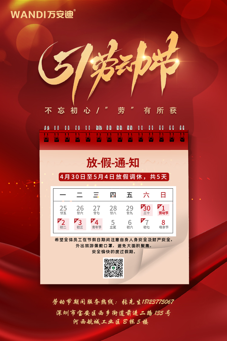 深圳市萬安迪科技有限公司“五一·勞動節”放假通知