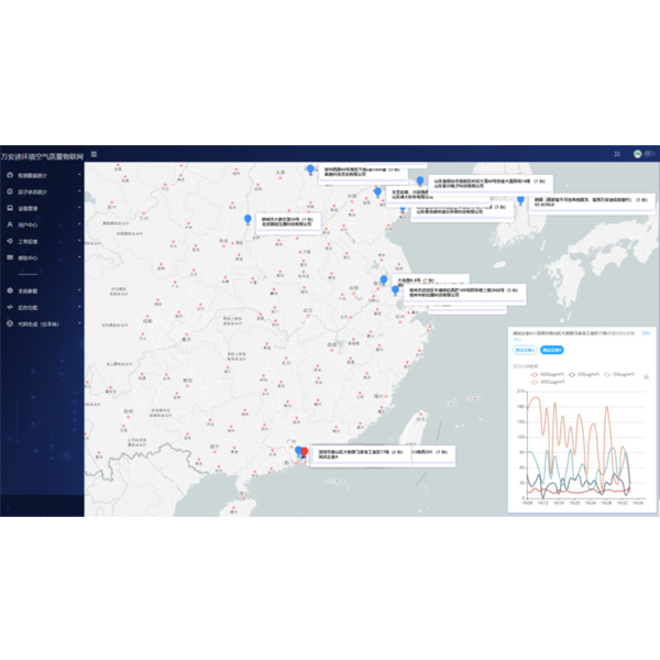 環境空氣質量物聯網平臺系統由感知層、平臺層和應用層組成,是基于物聯網、云計算理念構建的空氣質量大數據智能監管與解析平臺。結合空氣質量國標標準建設要求,實時采集SO2、NOx、CO、O3和PM2.5、PM10等氣體、氣象參數監測數據。可對原始數據、監控數據、站點數據、報警數據、用戶數據等進行有效整合,可全面應對環境大數據的數據挖掘及可視化展示需求,實現空氣質量大數據的快速挖掘、專業分析和靈活展示,為用戶創造更多的數據價值,為城市環境管理決策者通過數據查看,比較與分析后提供簡單、實用、有效的管理工具。